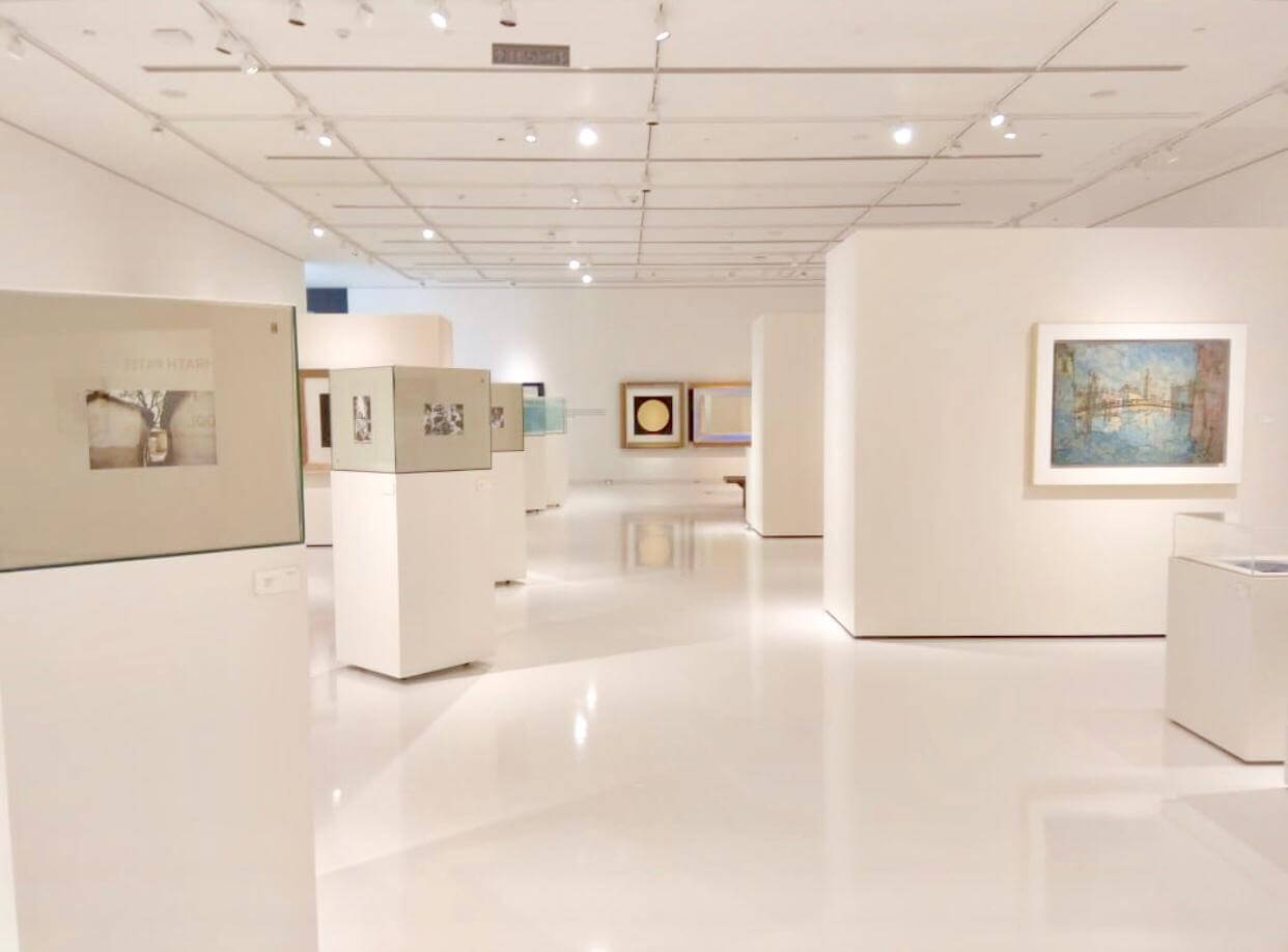 Emami Art is the ground floor gallery space with Harlequin Hi-Shine white gloss vinyl flooring that hosts a regular programme of exhibitions by national and international artists. The first is dedicated to Indian artist and designer Dashrath Patel’s collection of line drawings, ceramics, collages and photography created between 1930 – 2000.